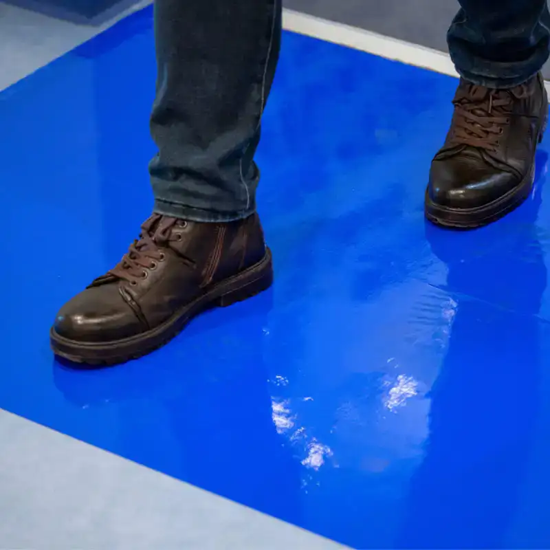 ผลิตจากวัสดุ PE ขนาดมาตรฐาน 26×45 นิ้ว เกรด Cleanroom กาวเหนียวได้มาตรฐาน ไม่ทิ้งคราบกาวที่พื้นและรองเท้า